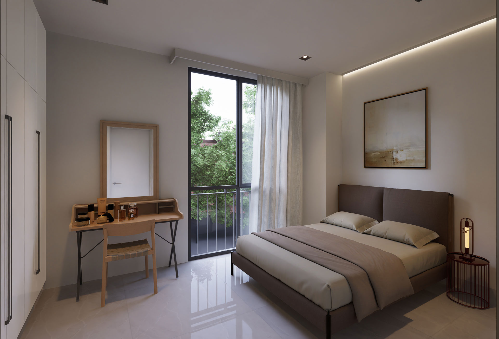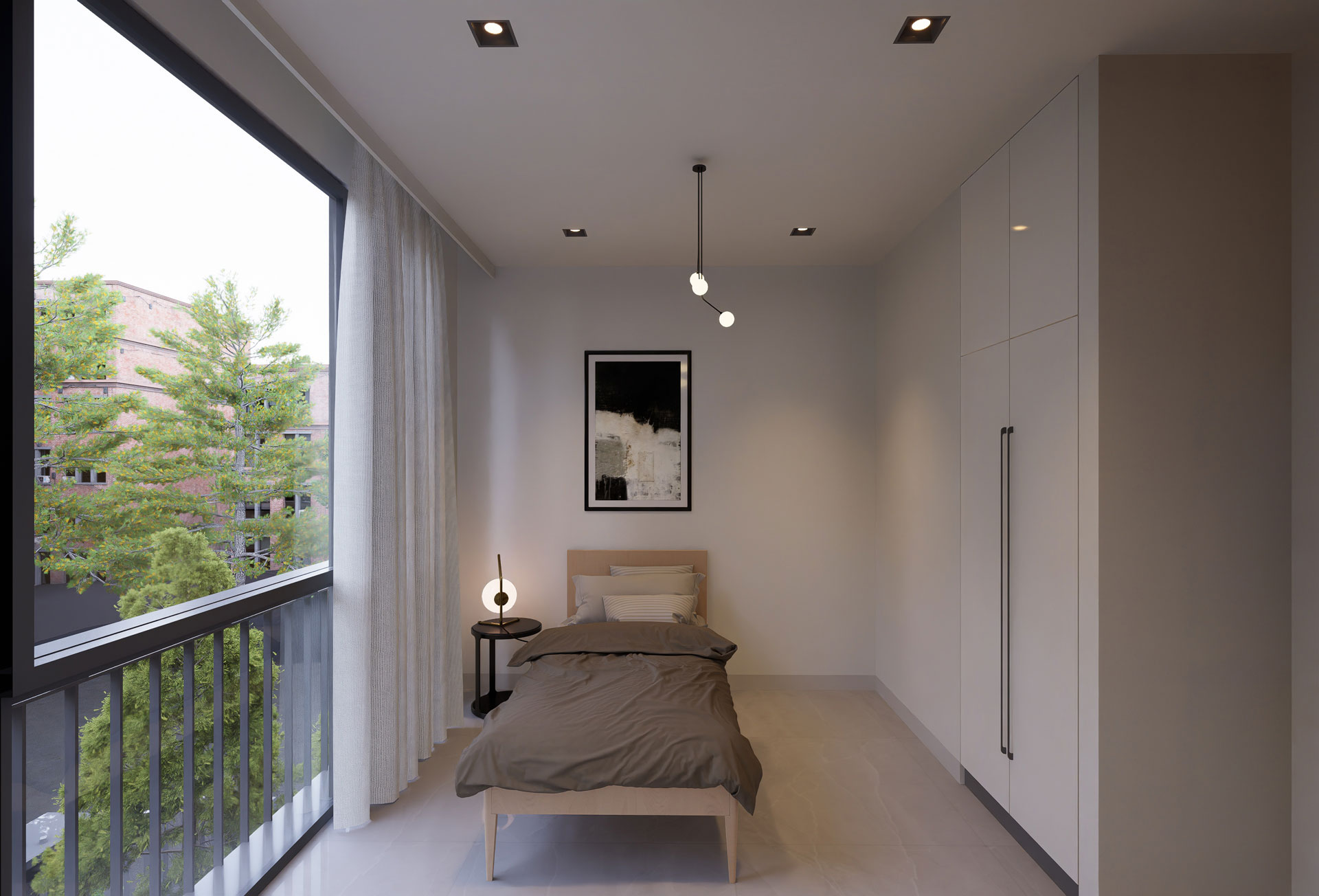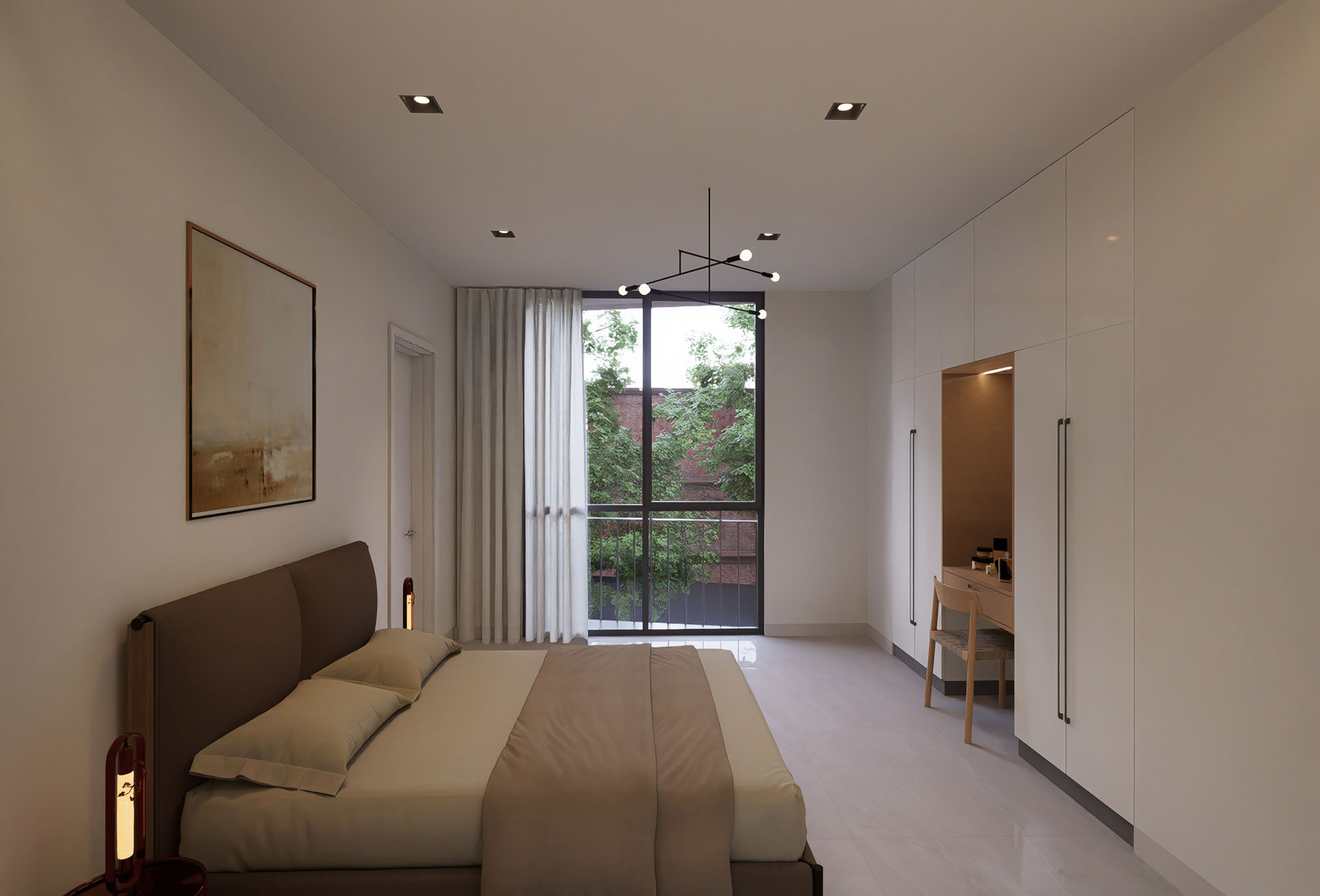 طراحی پلان واحدهای این ساختمان مدرن، به نحوی است که در هر طبقه دارای دو واحد بوده که واحد جنوبی دارای مساحت حدود 145 متر مربع و 3 اتاق خواب بوده و واحد شمالی با مساحت حدود 108 متر مربع و 2 اتاق خواب میباشد. با توجه به اینکه جانمایی زمین پروژه به نحوی است که دارای سه ضلع نورگیر در جنوب، شرق و غرب میباشد، واحدهای جنوبی از سه ضلع نورگیر بوده و واحدهای شمالی نیز از دو سمت دارای نورگیر هستند که این موضوع باعث تامین نور کافی و مناسب هر واحد میگردد؛ در هر واحد با بهکارگیری از متریال درجه یک با اجرای کاملا فنی و مهندسی کاربری آن را لذتبخشتر و این بنا را جزو برترین ساختمانهای مسکونی برند پایتخت قرار داده است.
